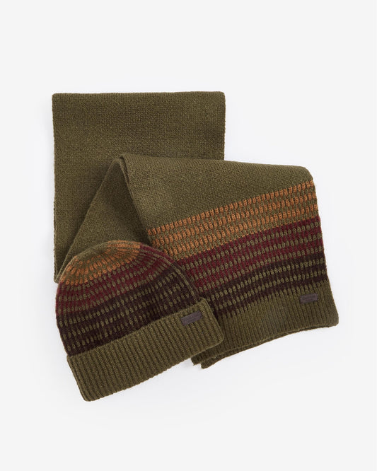 Vendor:Barbour Carlton Fleck Beanie & Scarf Mens Gift Set - Olive - OliveBarbour