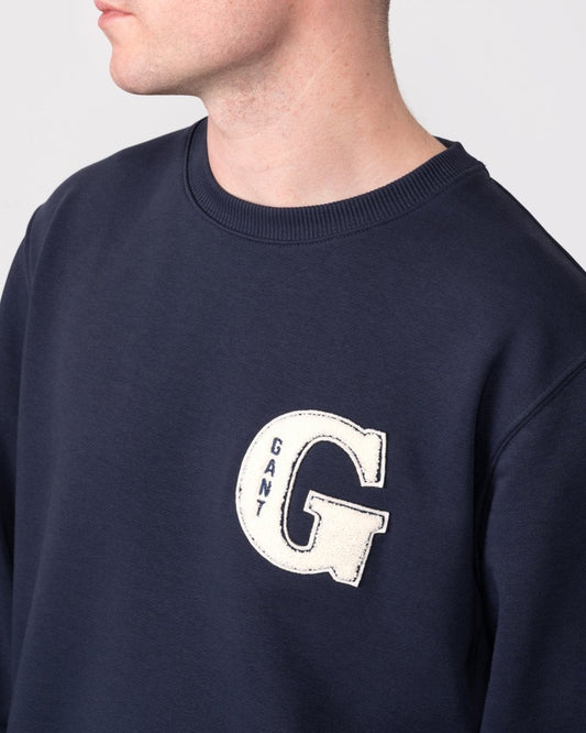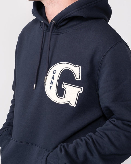 Vendor:GANT Mens Graphic Pullover Hoodie - 433 Evening Blue - 433 Evening BlueGANT