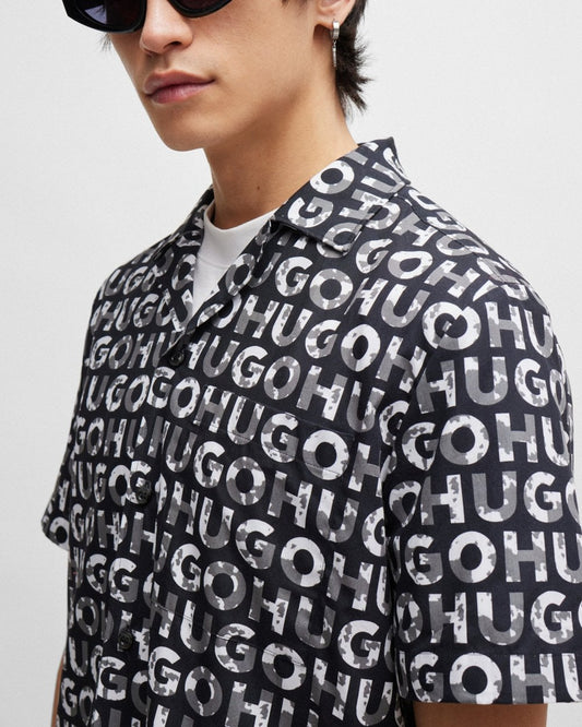 Vendor:HUGO Ebor Relaxed Fit Mens Stretch Cotton Shirt - Black 001 - Black 001HUGO