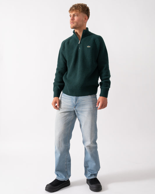 Vendor:Lacoste High Zip Neck Thick Rib Knit Mens Wool Sweater - Sinople YZP - Sinople YZPLacoste