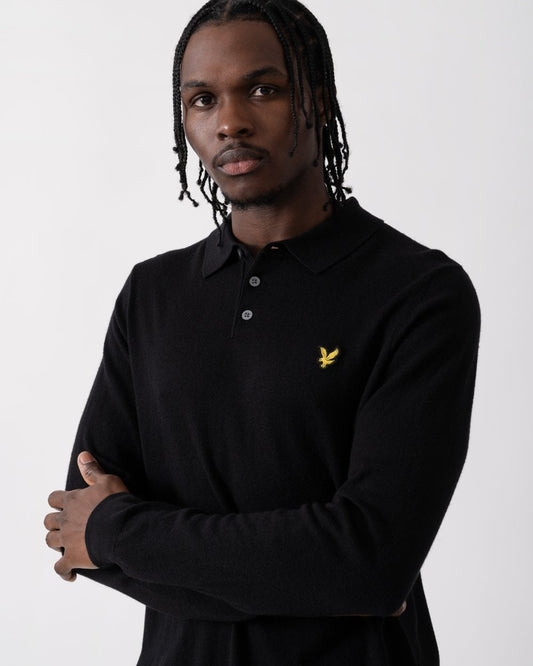 Cotton Merino Mens Long Sleeve Knitted Polo