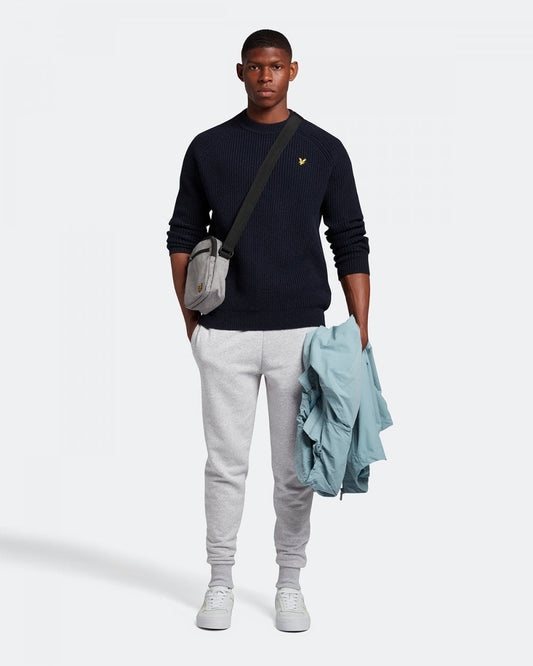 Vendor:Lyle & Scott Ribbed Jacquard Tartan Crew Neck - X977 Jet Black/Mid Grey Marl - X977 Jet Black/Mid Grey MarlLyle & Scott