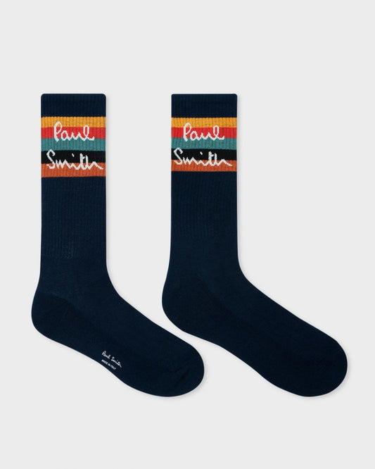 Vendor:Paul Smith Mens Artist Stripe Socks - 47 Navy - 47 NavyPaul Smith