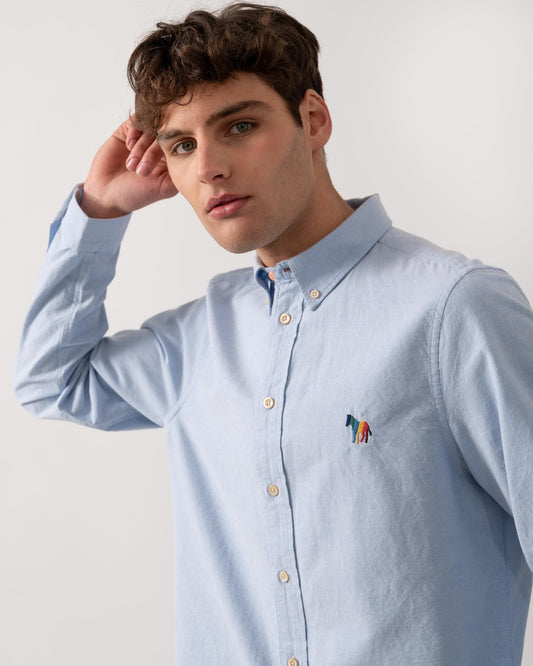 PS Mens Long Sleeve Tailored Fit Shirt with Signature Stripe Buttons - LT Blue