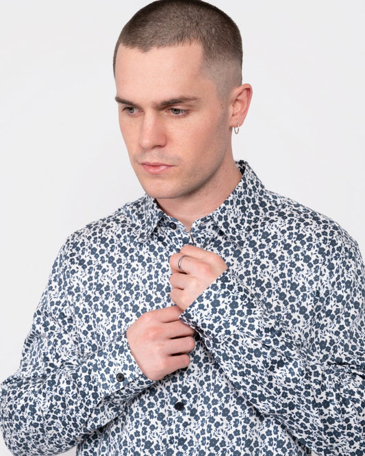 Ardea Mens Long Sleeve Geometric Print Shirt - Navy