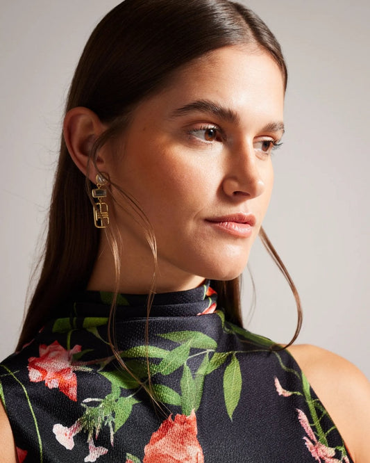 Calinia Womens Sleeveless Waterfall Midi Dress