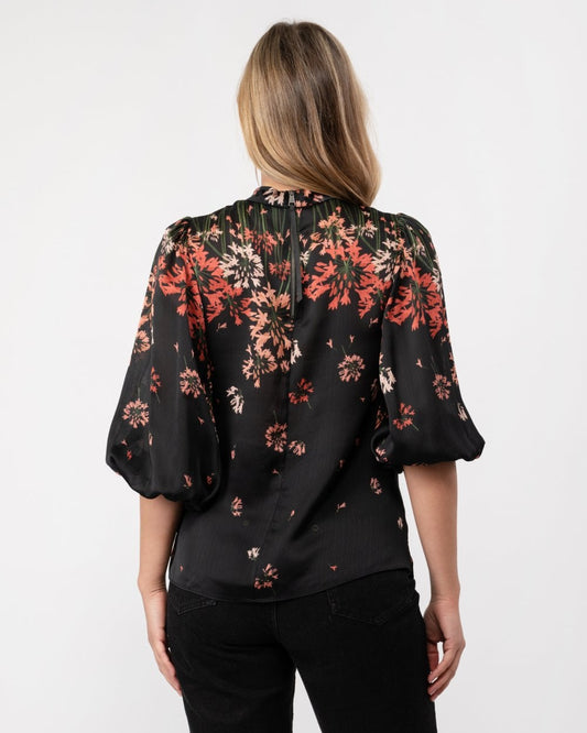 Eranthe Womens High Neck Balloon Sleeve Blouse