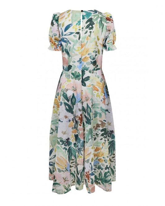Deliyla Womens High Low Hem Dress With Puff Sleeve