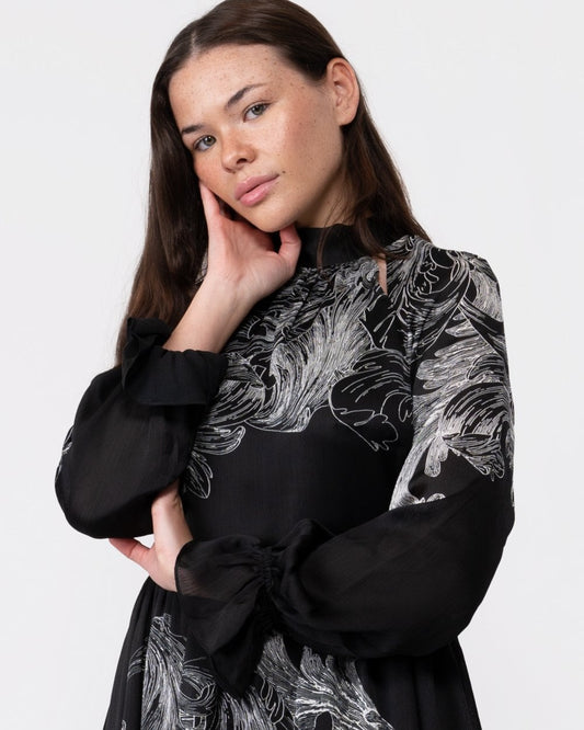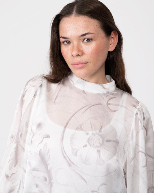 Lilioh Womens High Neck Balloon Sleeve Blouse