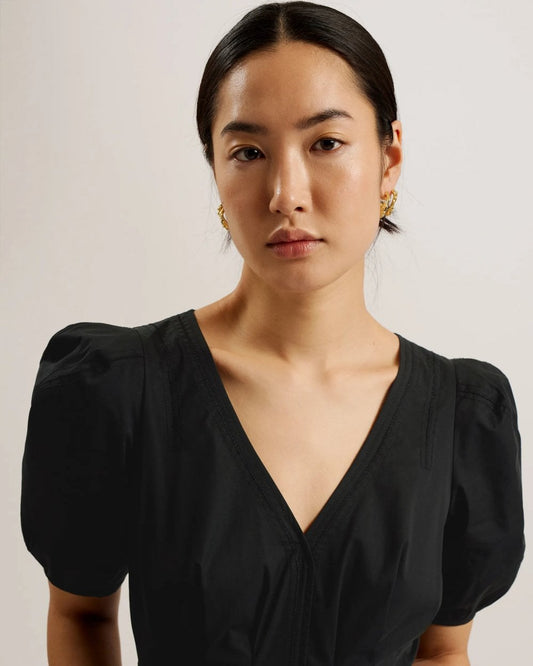 Ledra Womens Puff Sleeve Midi Dress