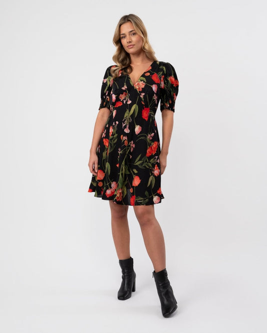 Sienno Womens Mini Puff Sleeve Tea Dress