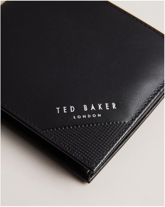Prugs Mens Embossed Corner Leather Bifold Coin Wallet