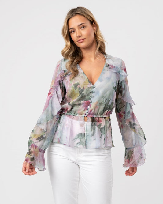 Sunnieh Womens Waterfall Ruffle Button Up Blouse