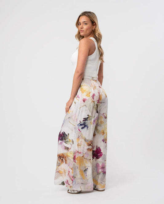 Tirsso Womens Floral Wide Leg Jumpsuit With Knit Bodice
