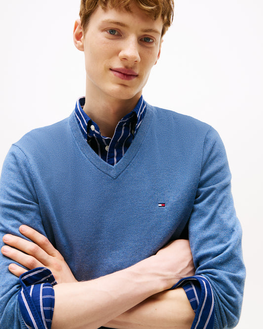 Vendor:Tommy Hilfiger Essential Cotton Mens V-Neck Jumper - Desert Sky - Desert SkyTommy Hilfiger Essential Cotton Mens V-Neck Jumper - Petrol Blue Heather - Petrol Blue HeatherTommy Hilfiger