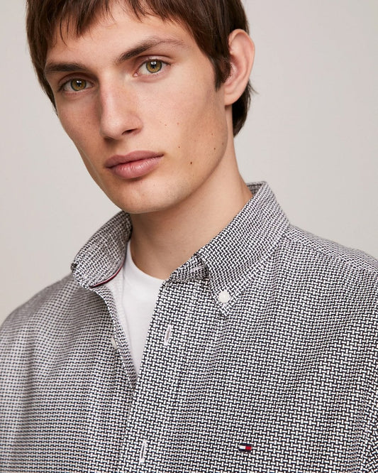 Oxford Basketweave Print Long Sleeve Mens Shirt