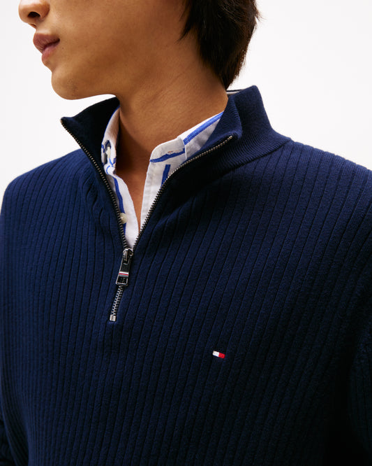 Pima Cotton Cashmere Structure Half-Zip Mens Mock Neck Jumper - Desert Sky