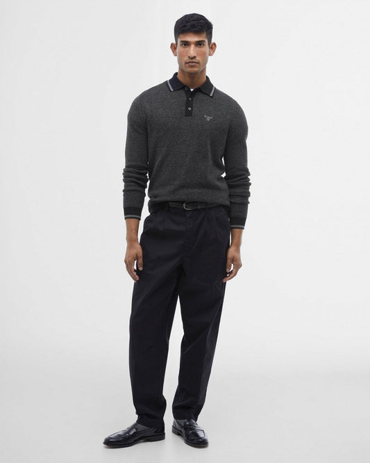 Hilden Mens Long Sleeve Knitted Polo Shirt