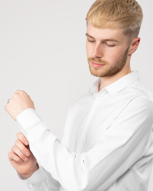 Mens Long Sleeve Stretch Shirt - White
