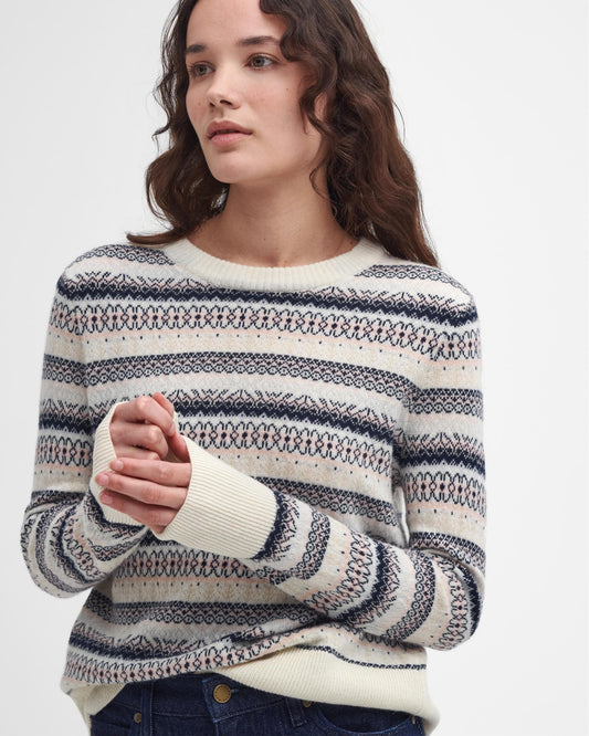Vendor:Barbour Pendle Crew Knitted Womens Jumper - Navy/Hessian Tartan - Navy/Hessian TartanBarbour