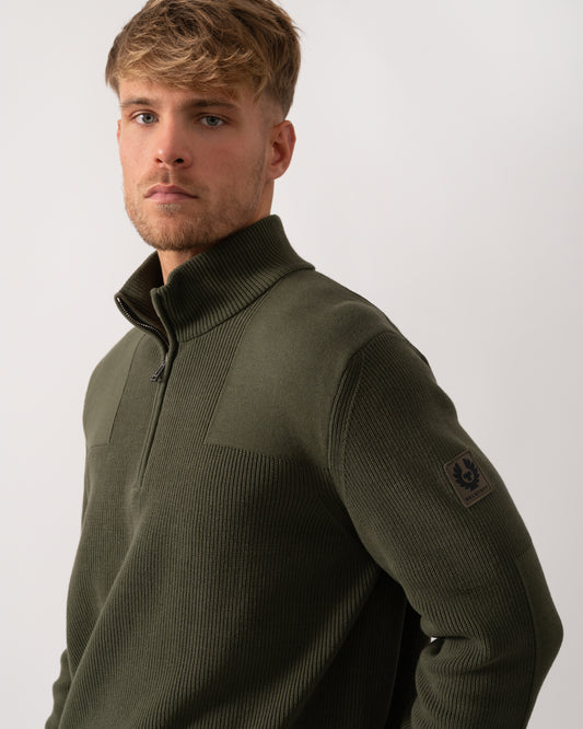 Vendor:Belstaff Commander Mens Quarter Zip Jumper - True Olive - True OliveBelstaff