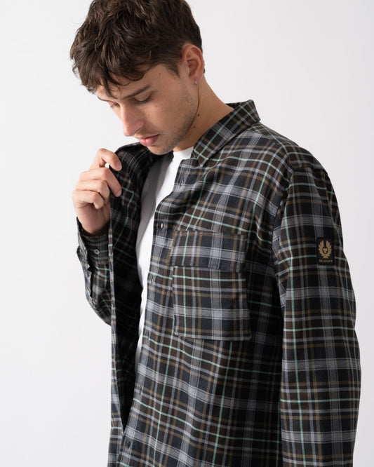 Vendor:Belstaff Scale Mens Long Sleeve Check Shirt - Black / Tornado Grey - Black / Tornado GreyBelstaff