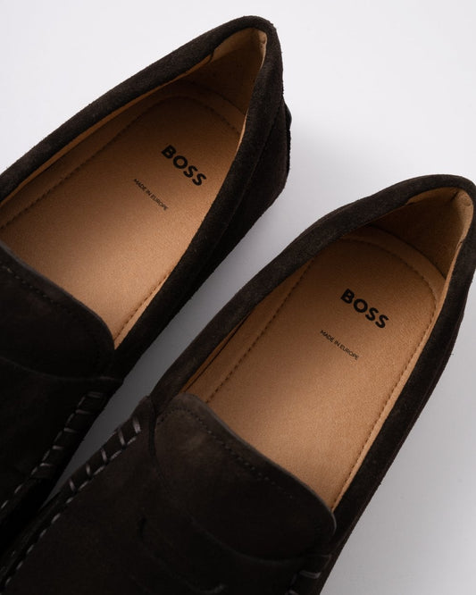 Vendor:BOSS Orange Noel Mens Suede Moccasins with Penny Trim - Dark Brown 201 - Dark Brown 201BOSS Orange Noel Mens Suede Moccasins with Penny Trim - Medium Beige 260 - Medium Beige 260BOSS Orange