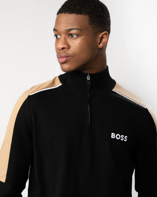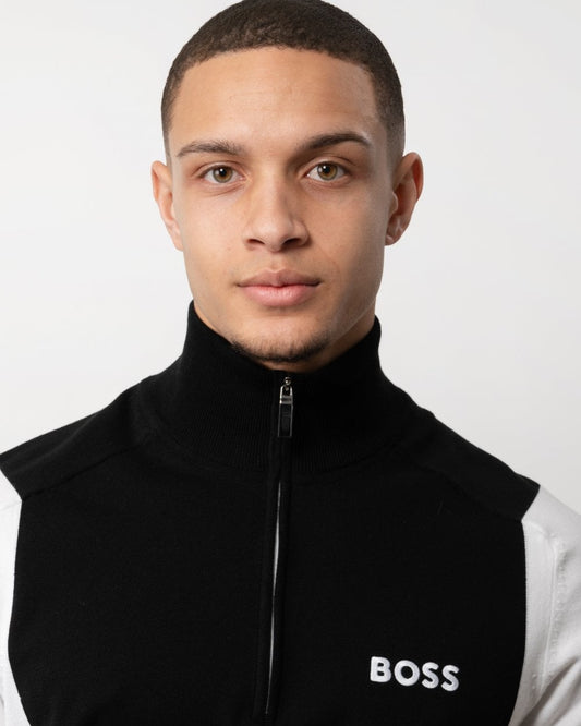 Zelchior-X Mens Cotton Blend Zip-Neck Sweater with Embroidered Logos