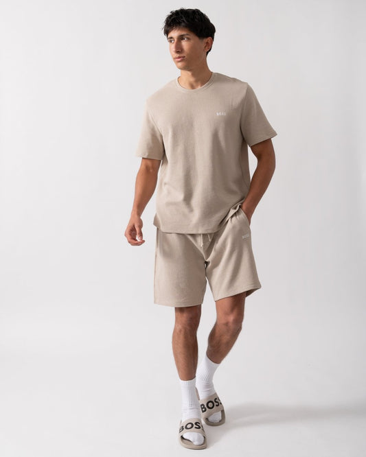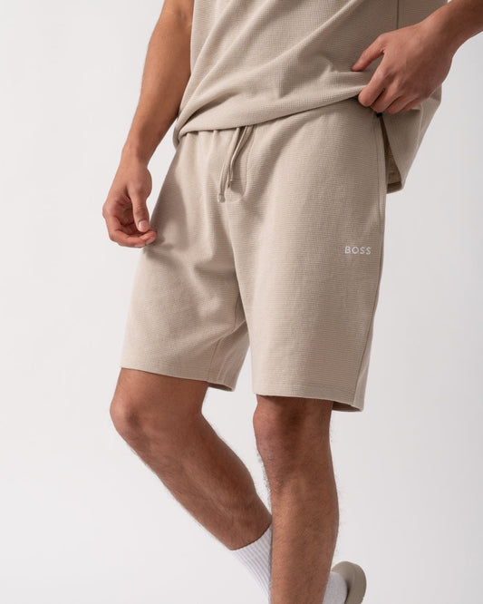 Vendor:BOSS Orange Waffle Mens Cotton Blend Waffle Structure Pyjama Shorts with Embroidered Logo - Light Beige 275 - Light Beige 275BOSS Orange