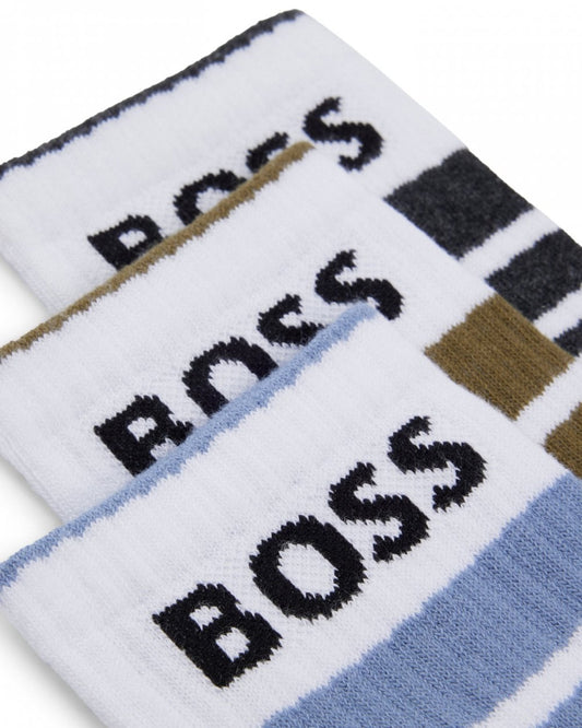 Mens 3-Pack of Short Socks with Stripes and Logos