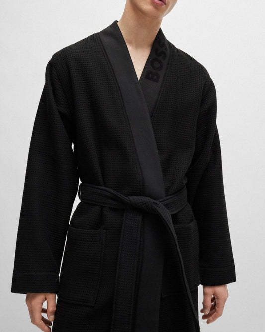 Mens Waffle-Structure Dressing Gown with Embroidered Logo