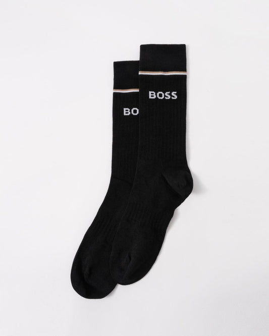 Vendor:BOSS Orange Mens Two-Pack of Short Length Socks with Signature Stripe NOS - Black 001 - Black 001BOSS Orange