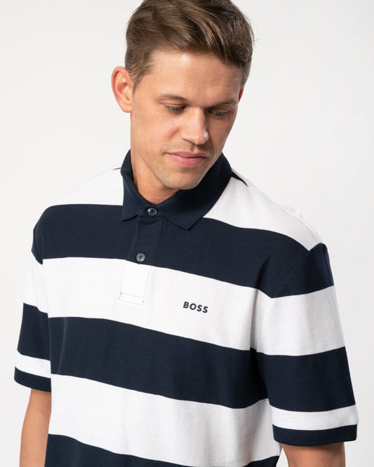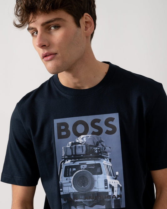 Vendor:BOSS Orange Mens Metallic Stripe Logo T-Shirt - Navy 412 - Navy 412BOSS Orange