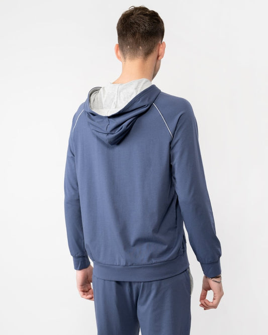 Mix&Match Mens Full Zip Loungewear Hoodie in Stretch Cotton with Embroidered Logo