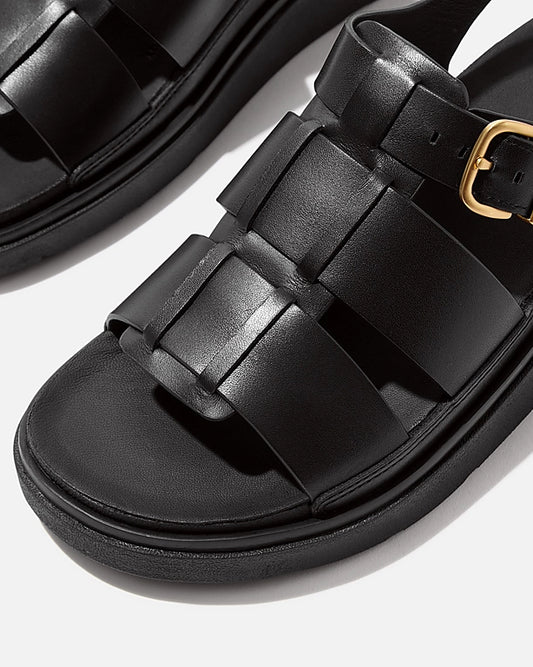 Vendor:FitFlop Womens Gen-FF Leather Fisherman Sandals - All Black 090 - All Black 090Fitflop