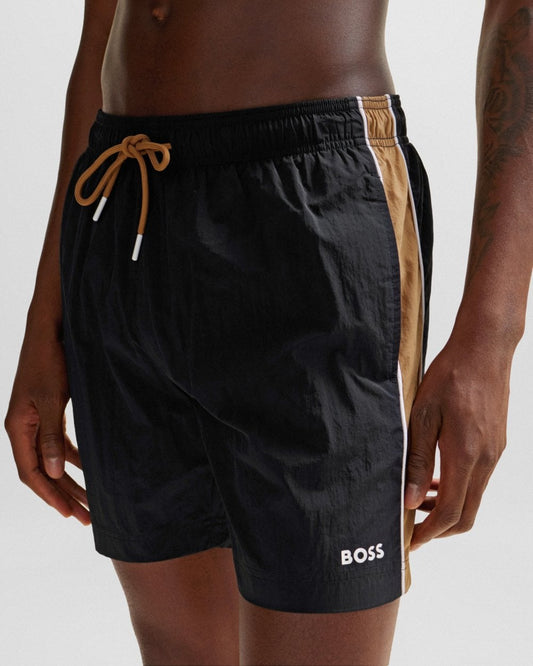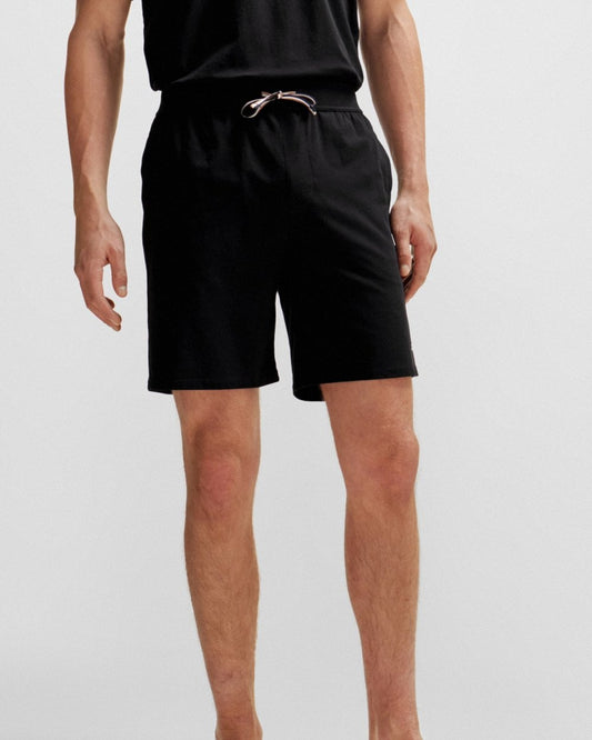 Vendor:BOSS Orange Unique Mens Stretch-Cotton Pyjama Shorts with Tape Trims - Black 001 - Black 001BOSS Orange
