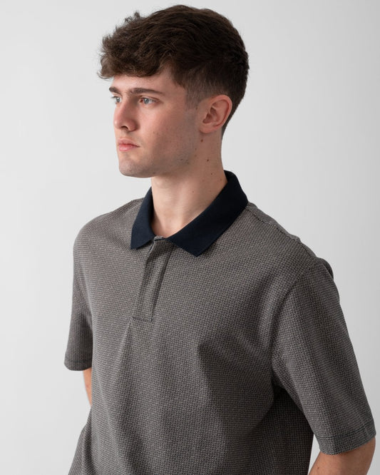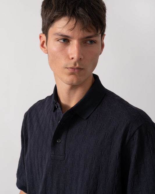 Mens Regular Fit Polo Shirt with Tone-On-Tone Allover Logo - Deep Navy UB101