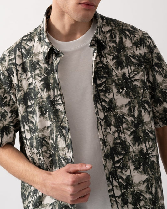 Mens Palm Tree Print Hawaiian Shirt - Optic White/Green Resort F0039