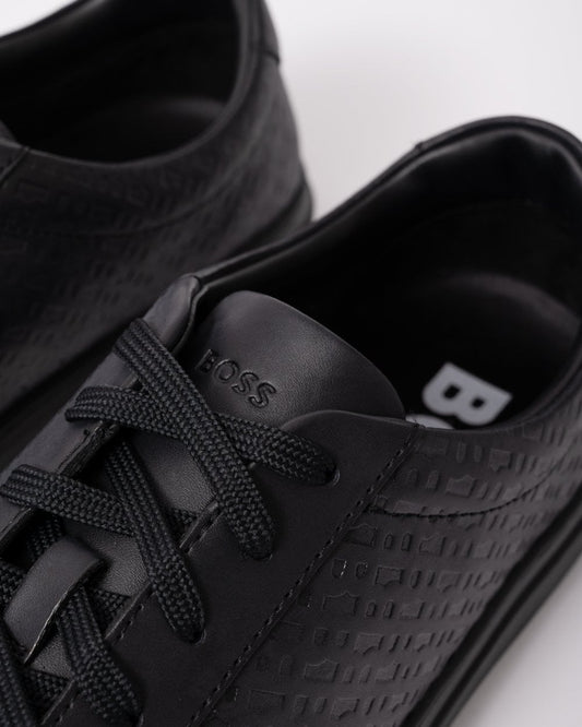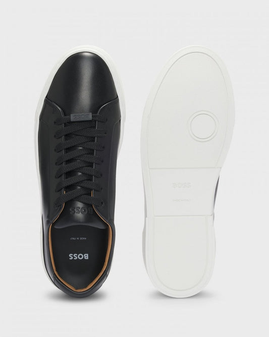 Vendor:BOSS Orange Kieran Mens Grained-leather trainers with rubber sole - Black 002 - Black 002BOSS Orange