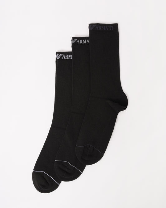 Vendor:Emporio Armani 3 Pack Mens Eagle Logo Sport Socks - Black/Black/BlackEmporio Armani