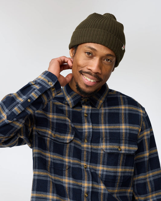 Ovik Heavy Flannel Mens Shirt - Dark Navy-Buckwheat Brown 555-232