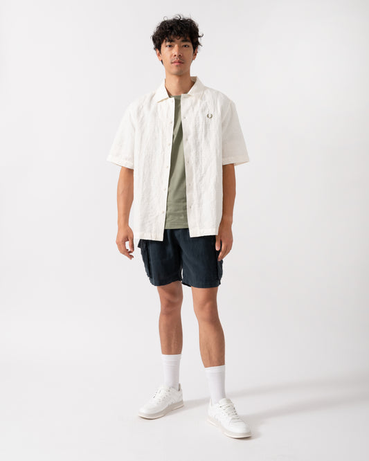 Mens Jacquard Linen Blend Shirt - Light Ecru 760