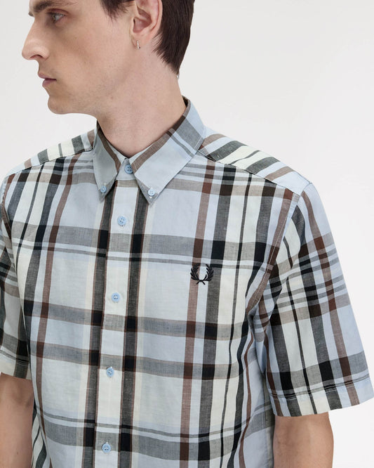 Mens Short Sleeve Madras Check Shirt Light Smoke 353
