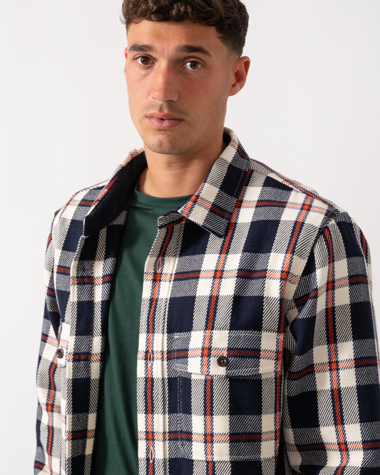 Mens Heavy Twill Check Overshirt - 433 Evening Blue