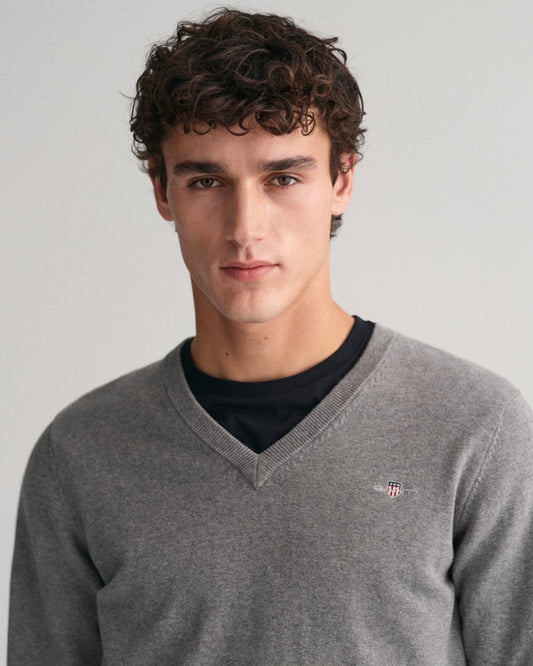Vendor:GANT Mens Classic Cotton V-Neck Jumper - 433 Evening Blue - 433 Evening BlueGANT Mens Classic Cotton V-Neck Jumper - 5 Black - 5 BlackGANT Mens Classic Cotton V-Neck Jumper - 902 Dark Jeansblue Melange - 902 Dark Jeansblue MelangeGANT