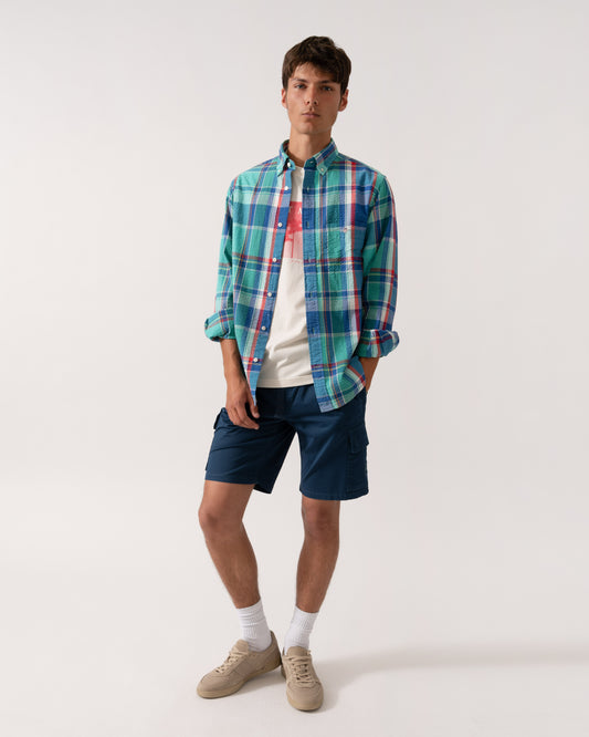 Mens Regular Fit Seersucker Madras Shirt with Shield Logo 353 Tropic Blue