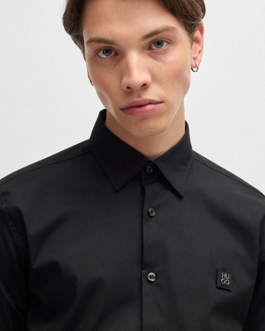 Vendor:HUGO Ebor Relaxed Fit Mens Stretch Cotton Shirt - Black 001 - Black 001HUGO