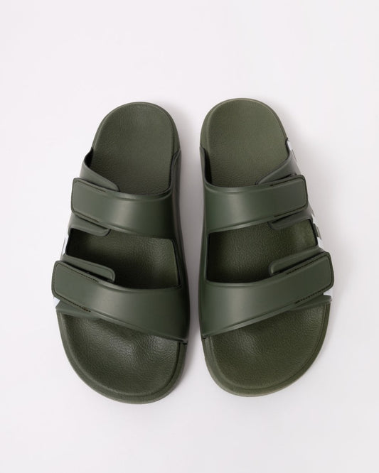 Evander Mens Logo Sandals with Double Touch-Closure Straps - Dark Green 306