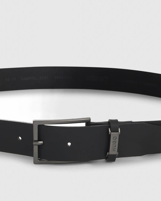 Vendor:HUGO Gabriel Mens Buffalo-Leather Belt with Logo Keeper and Polished Hardware - Black 001 - Black 001HUGO