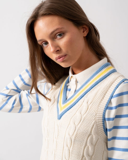 Milbourne Womens Pullover Hoodie - Navy/White Stripe